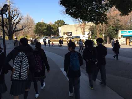 朝は寒かったですが、昼になると暖かくなりました。上野の山には、修学旅行の中学生もたくさんいました。1年生は、良いチームワークで目的を達成し、大成功の都内巡りとなりました。博物館や美術館などは、中学生までと70歳以上が無料です。生徒の皆さんは、生徒手帳を見せては、さらりと通過していましたね。