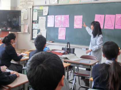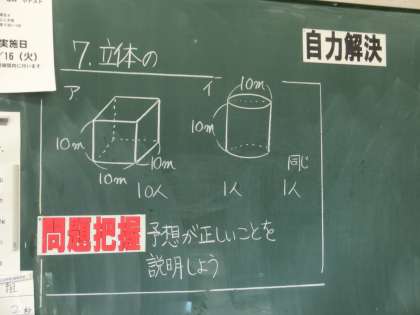 2月8日(月)主体的な学習・問題解決的な学習が展開されています! 1年数学科(単元名 空間図形)
