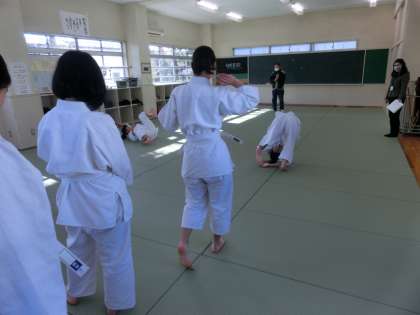 2月8日(月)主体的な学習・問題解決的な授業が展開されています! 1年保健体育(単元名 武道柔道)