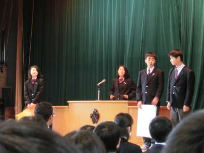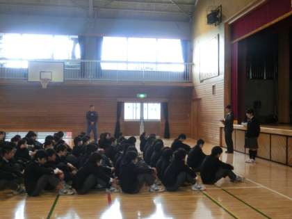 2月15日(月)朝礼 配膳競争や風邪防止キャンペーンの報告がありました。