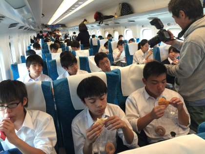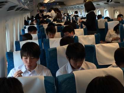 5月17日(火)修学旅行 第3日目14時39分修学旅行専用団体新幹線 軽食タイム
