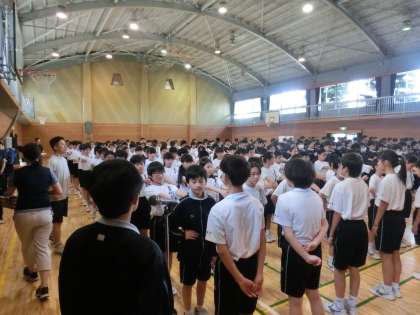 5月23日(月)朝礼 運動会全体練習が始まります!1年生はジャージで準備万端ですね!