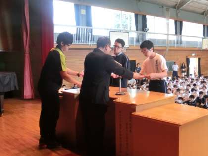 剣道部の個人準優勝・3位入賞の表彰がありました。