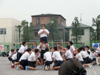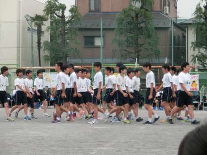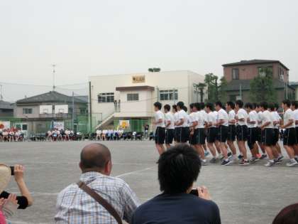 5月28日(土)飛鳥中運動会 午後の部 男子は組体操とピラミッドのかわりに集団行動を披露。整然とまた愉快な演技に拍手喝さいでした!