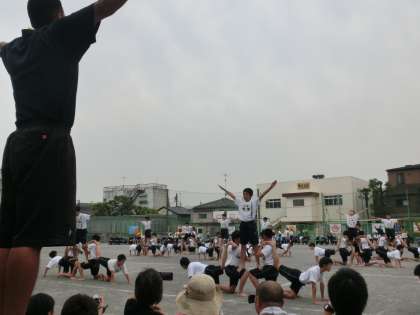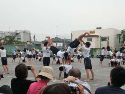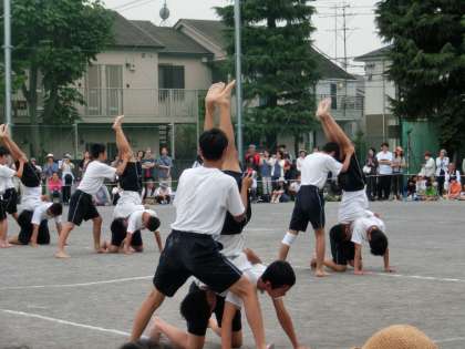 5月28日(土)飛鳥中運動会 午後の部 男子は組体操とピラミッドのかわりに集団行動を披露。整然とまた愉快な演技に拍手喝さいでした!