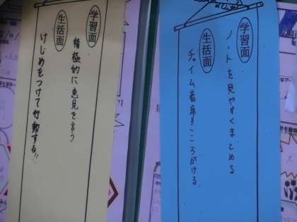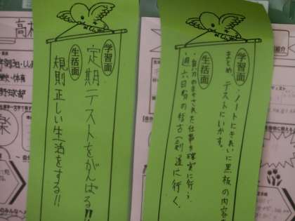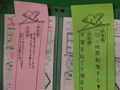 学級に自分の目標掲示 主体的な学びへの決意が多いですね!