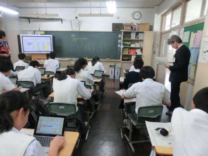 北区教育委員会から、水浦統括指導主事、菊池、岡庭指導主事を招聘し、全学級で、問題解決的な授業を実施しました。教科は、英語、国語、数学、理科、家庭科、道徳科でした。習熟度に応じたり、思考ツールタブレットを活用したり、問題解決型授業4ステップパネルで授業展開等、生徒が考え・議論できる工夫がありました。3人の指導主事の先生からは、飛鳥中の現在の学力の課題の指摘と改善の方向性や生徒の意欲や思考の深まり、アクティブ・ラーニングの活用など、多様多数の指導・助言をいただきました。感謝です。飛鳥中の6月は学力充実の時期と考えています。生徒の学びが深まっていくよう授業改善を続けて参ります。