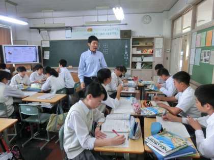 6月6日(月)2年生 英語科アクティブ・ラーニング!オールイングリシュ授業にチャレンジ!次々と、英語のみで授業が展開されています。動きのあるアクティブな授業です。(指導は、英語科本田先生)