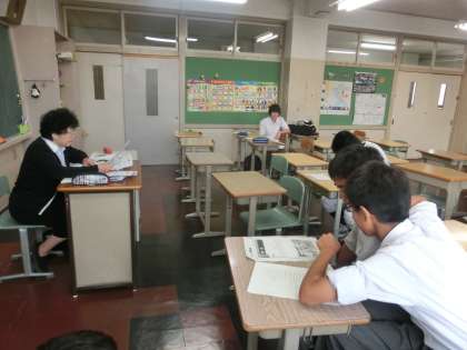 今日も小野先生にご指導いただきました。部活動の合い間をぬって、学びに来ている生徒もいます。明日は、漢字検定です。生涯学習資格として、卒業するまでに、英検・漢検・数検に合格しましょう。自主勉強ができますので、ぜひ、チャレンジしてみましょう。2年生の中にも、すでに高校卒業程度という英検準2級にチャレンジしている生徒もいます。