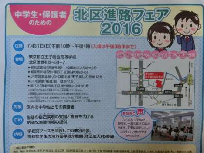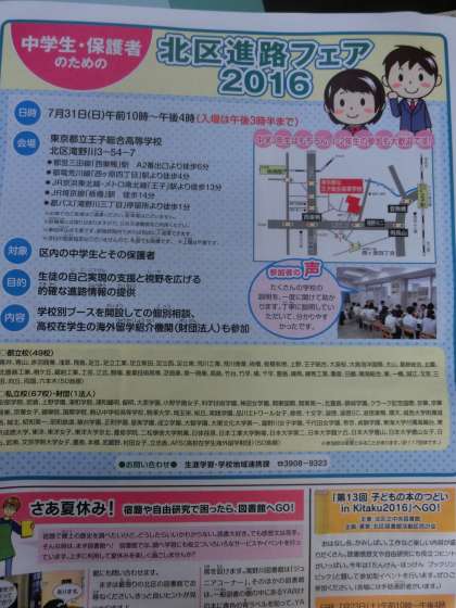 ●7月31日(日)の北区進路フェアーに行き、進路への気持ちを高めることもよいでしょう。来来週はもう、夏休みです。