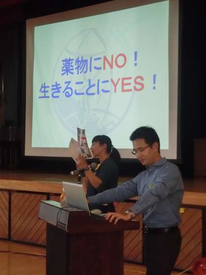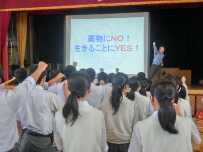 ●キャッチコピー「薬物NO! 生きることにYES!」を山田先生と一緒にコールしました。