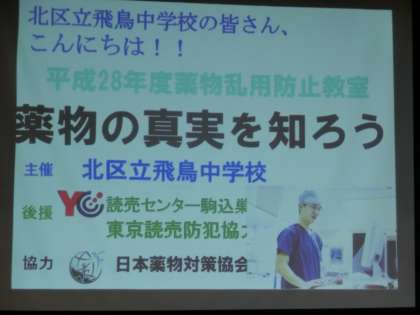 ●東京読売防犯協会が後援。講師の先生は、赤ちゃんの出産1,000人以上も立ち会ったという産婦人科医の山田先生。日本薬物対策協会に所属され、分かり易い説明をしていただきました。ありがとうございました。