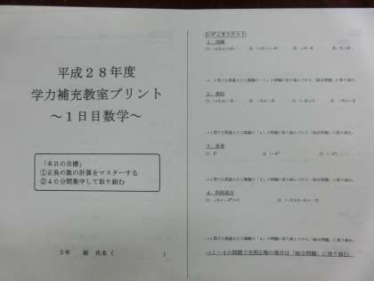 ●各学年で組まれた学力補充教室や自主勉強。そしてスクラムサポートでは、学習計画指導。部活動は、朝から都大会等に向けてランニングや練習で活気のある朝です。※数学科では、大学院生の方にもTTで手伝っていただいています。