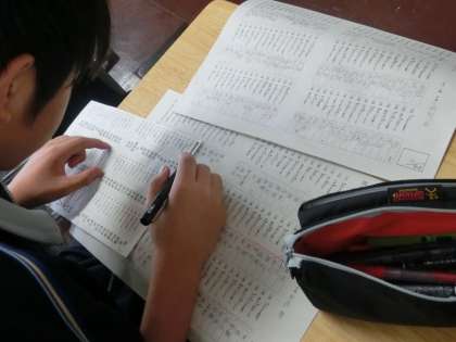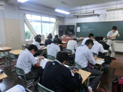 ●各学年で組まれた学力補充教室や自主勉強。そしてスクラムサポートでは、学習計画指導。部活動は、朝から都大会等に向けてランニングや練習で活気のある朝です。※数学科では、大学院生の方にもTTで手伝っていただいています。