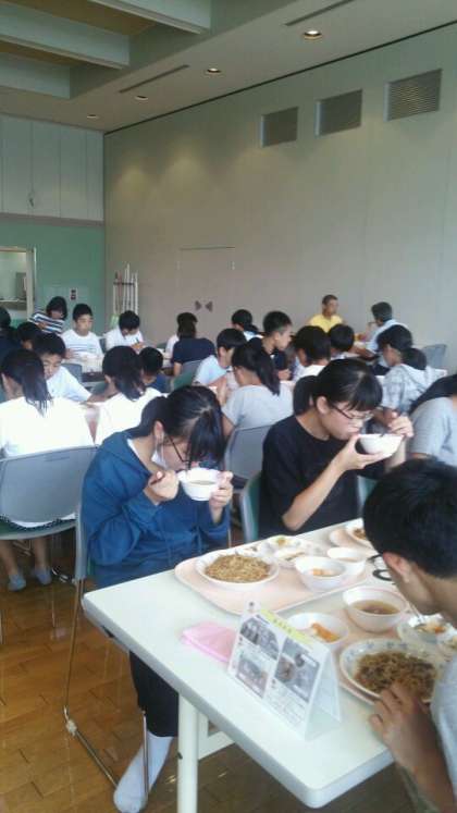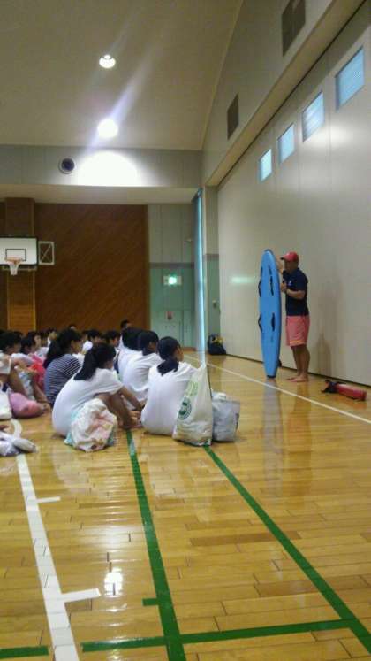 昼食をとり、ライフセーバーに指導を受け、いよいよ、海へ。元気に楽しく頑張っています。牛乳タイムもありますね。