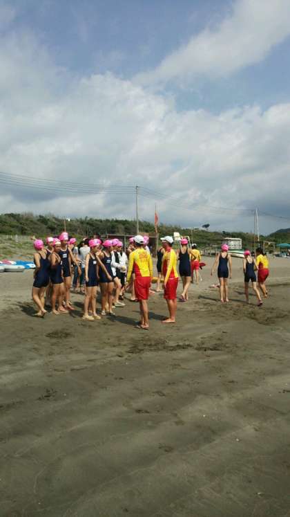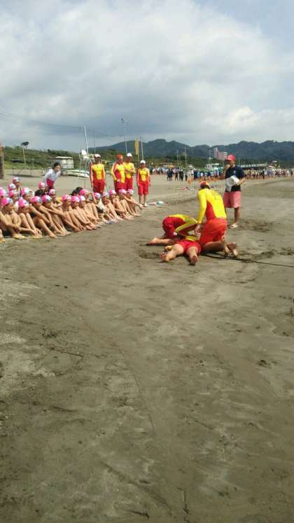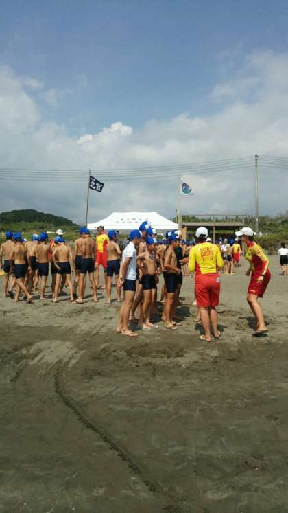昼食をとり、ライフセーバーに指導を受け、いよいよ、海へ。元気に楽しく頑張っています。牛乳タイムもありますね。