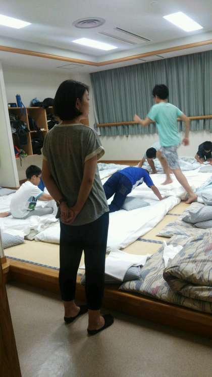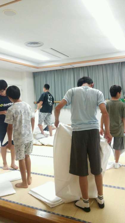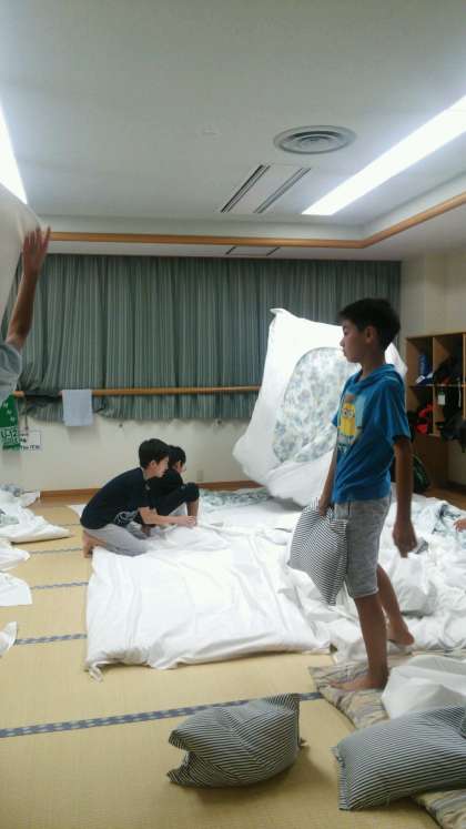 7月25日(月)1学年岩井臨海学園 1日目 就寝準備です。