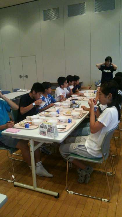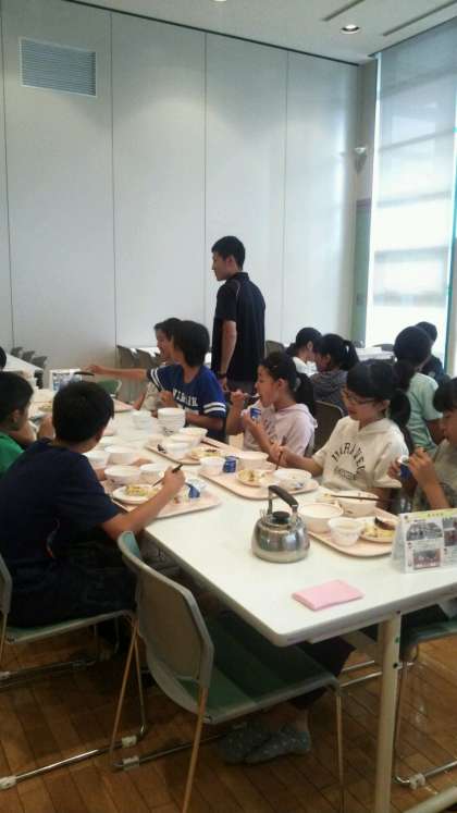 7月26日(火)1学年岩井臨海学園 2日目 朝食。しっかり食べて、岩井の海を楽しみましょう!