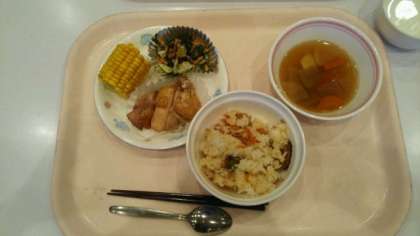 7月26日(火)1学年岩井臨海学園 2日目夕飯は、五目ちらし寿司、チキンソテートウモロコシ、のっペイ汁です。そして、バニラアイスクリームの登場に生徒は歓声をあげました。 公開日 2016/07/26 更新日 2016/07/26 学校生活