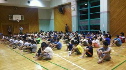 岩井臨海学園2日目のレクリエーションの最後に岩井学園卒業式を行いました。各クラスの代表の言葉と、全員の感謝を認めた色紙を職員の代表の方に渡しました。小4,、5年と今回で3回目の岩井学園、感慨深いものです。このあとは、各部屋で部屋会議を行い、就寝準備となります。 公開日 2016/07/26 更新日 2016/07/26 学校生活