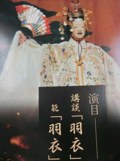 ※実演の写真禁止のため、開演前の様子です。驚いたことに、立派な松がありました。不思議なことですが、天女が羽衣を返してもらうシーンでは、風が強く吹きました。天女の舞が始まると、曇り空から太陽が輝きだしました。さらに、演じ終わったとき、もんしろちょうが横切っていきました。最後は、静かな曇り空、秋の空となったのです。