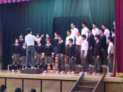 今日は、3時間すべての授業公開。生徒は生き生きと張り切って授業に取り組んでいました。主体的な学びを心掛け、授業、教育活動、自治活動、部活動など幅広い実践になっています。楽しみな生徒たちです。先生たちにとっても、保護者の方々にとっても誇りある輝く宝です。3年生は合唱コンクールのリハーサルもありましたが、朝一番からお父様方も来られ、ありがたく思いました。校庭で保健体育のハンドボールやソフトボールの見学もしていただきました。学校評議員の方はいつも学校の教育活動をご覧いただいています。感謝です。ありがとうございました。