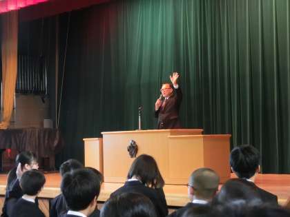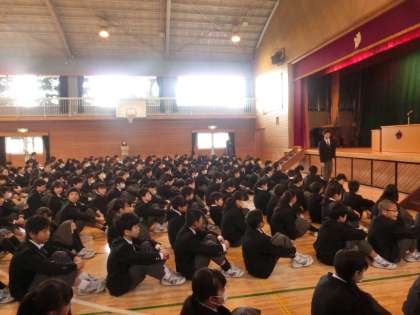 2月20日(月)朝礼 暖かくなりました!給食委員会の牛乳キャンペーン結果発表!