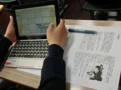 ※タブレット型PCのコラボ・ノートという意見交換ツールを活用しています。現在、新しい思考ツールとして、本校で研究もしています。