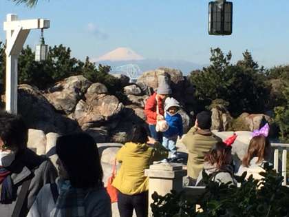 富士山が見えます。とても混んでいますが、皆さん、元気に楽しんでいます。