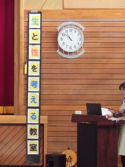 3月10日(金)3年生 生と性を考える教室 助産婦の講話を聞き、赤ちゃん人形を実際に抱っこ