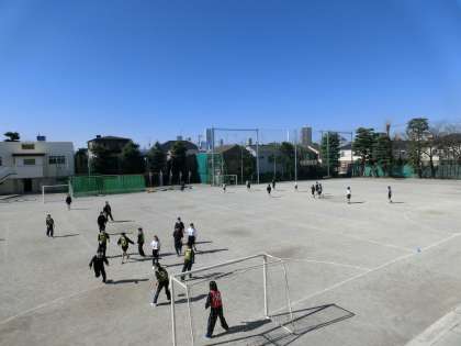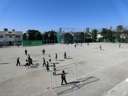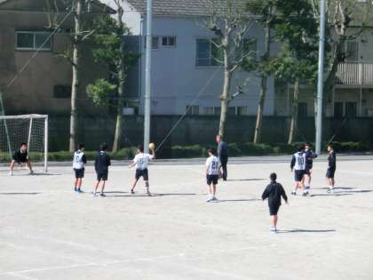 3月16日(木)素晴らしい天気です!気温も上がり、1年生の体育は女子サッカー、男子ハンドボールで汗をかいています!