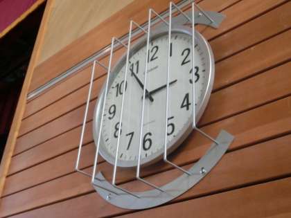 ★体育館に新しい電波時計がつきました。防護ネットもあり、ご活用いただければ幸いです。