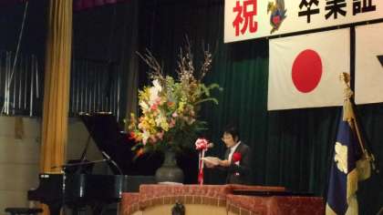 特に、式歌が素晴らしいとお褒めいただきました。おかげ様で、最高の歌声、式の態度で、卒業生の素晴らしさを強く感じた立派な卒業式になりました。
