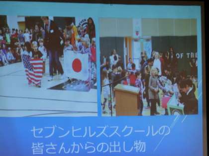 今年度の秋に派遣でアメリカにホームステーをした生徒話を、1・2年生で聞きました。