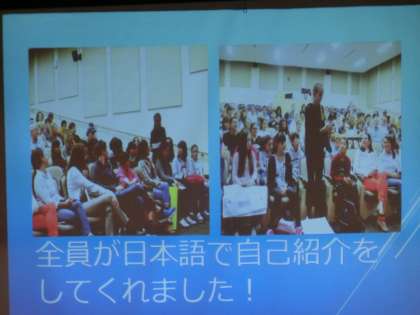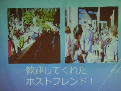今年度の秋に派遣でアメリカにホームステーをした生徒話を、1・2年生で聞きました。