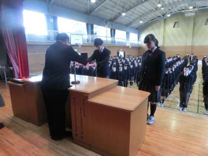 代表生徒が、各学年、修了証書を受け取りました。