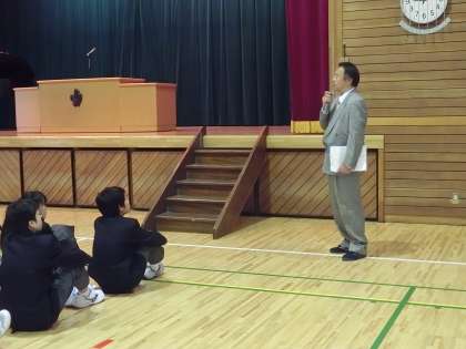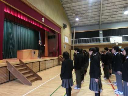 校長講話は「志」の大切さ。生活指導主任の講話は「安全」についてでした。