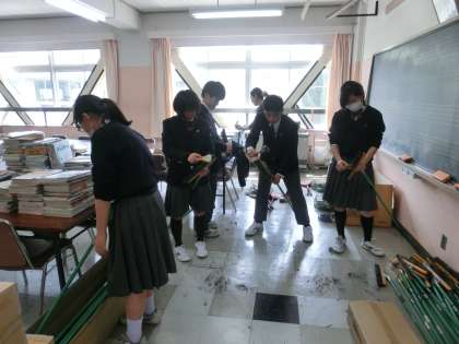 4月6日(木)入学式の準備です。お花、会場設営、清掃用具の整備まで生徒が主体的に実行してくれます!