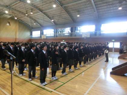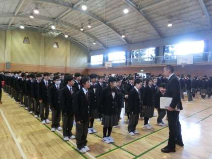 4月10日(月)全学年そろって朝礼です。1年生もしっかりと整列できました!