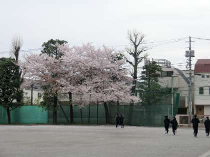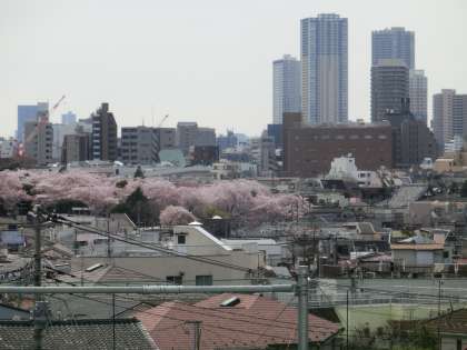 4月10日(月)桜はまだ満開です!部活動で走っています。都立染井墓地の桜満開!池袋サンシャインもくっきりの良い天気です!
