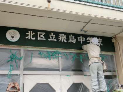 70周年記念式典に合わせて、飛鳥中の新しい徽章(きしょう)と名称のプレートが正面玄関に取り付けられます。