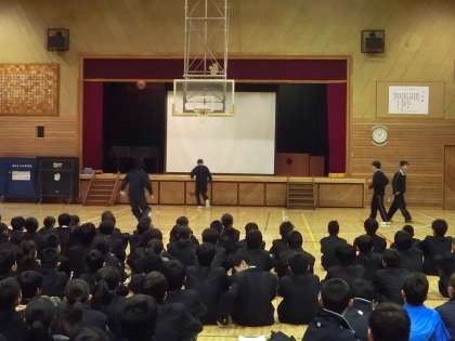 部活動紹介が面白く、また真剣に行われました。1年生はぜひ、体験入部などを通して、部活動に積極的に参加しましょう!