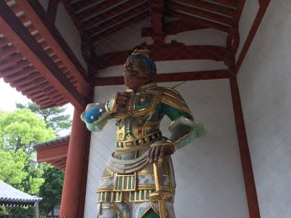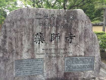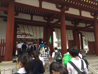 薬師寺に来ました。フェノロサの言う凍れる音楽という躍動感のある東塔は修理中です。お坊さんに薬師寺の歴史など講話をしていただきました。