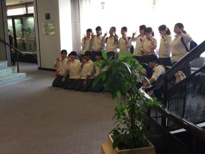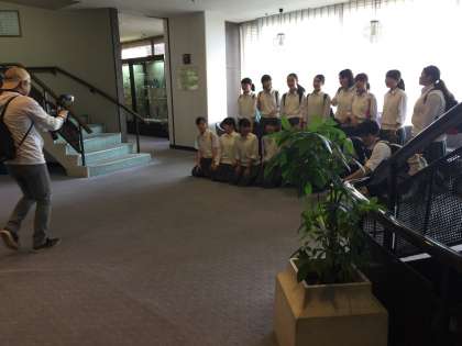 出発します。記念写真、班行動用GPSスマホチェック、いよいよです。