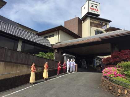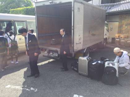 大きな荷物は先にホテルカンラへ。奈良パークホテルの方々がお見送りです。