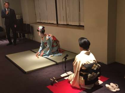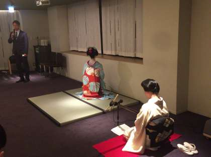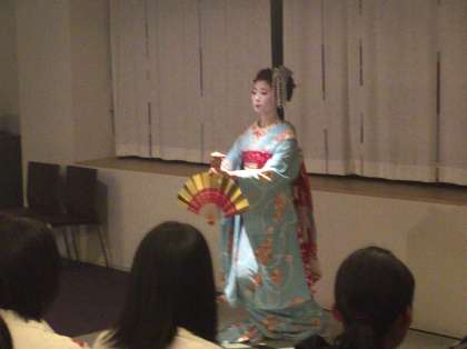 本物の舞妓さんと芸妓さん(三味線)をお招きしました。三味線専門の芸妓さんは13人のみとのこと。