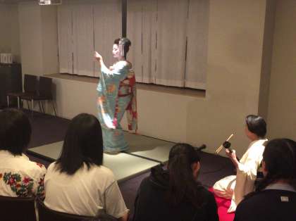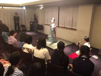 本物の舞妓さんと芸妓さん(三味線)をお招きしました。三味線専門の芸妓さんは13人のみとのこと。