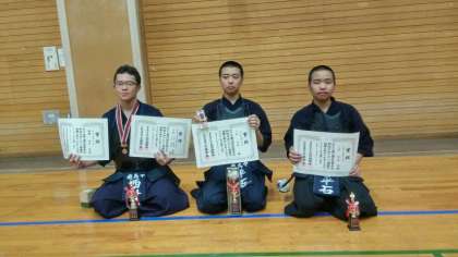 昨日、北区青少年剣道大会がありました。中3の部で西村君が優勝、平石(兄)君が準優勝、中1の部で平石(弟)君が第三位、日本剣道形の部で西村・平石(兄)君のペアが第三位に入りました。朝礼で表彰を行いました。