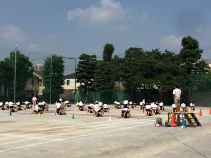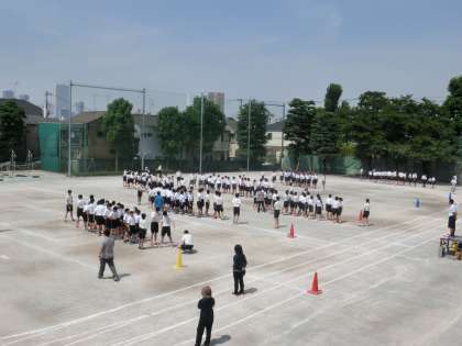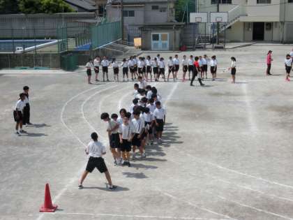 ※1年生は、朝礼でも話しましたが、2・3年生に比べまだ体力がないため、ゆっくり実施しています。調子がうまくないときは、先生に遠慮なく申し出ましょう。