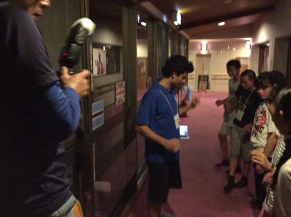 これは、各国の留学生の国際的な文化を歌や踊りを留学生のキャプテンと一緒に表現しようとするものです。とても楽しいリズムカルな表現、また深い魂に響くような音楽と踊りなど、すべて英語で実施します。夕食終わり、この時間まで英語漬けの本当に英語どっぷりの一日でした。